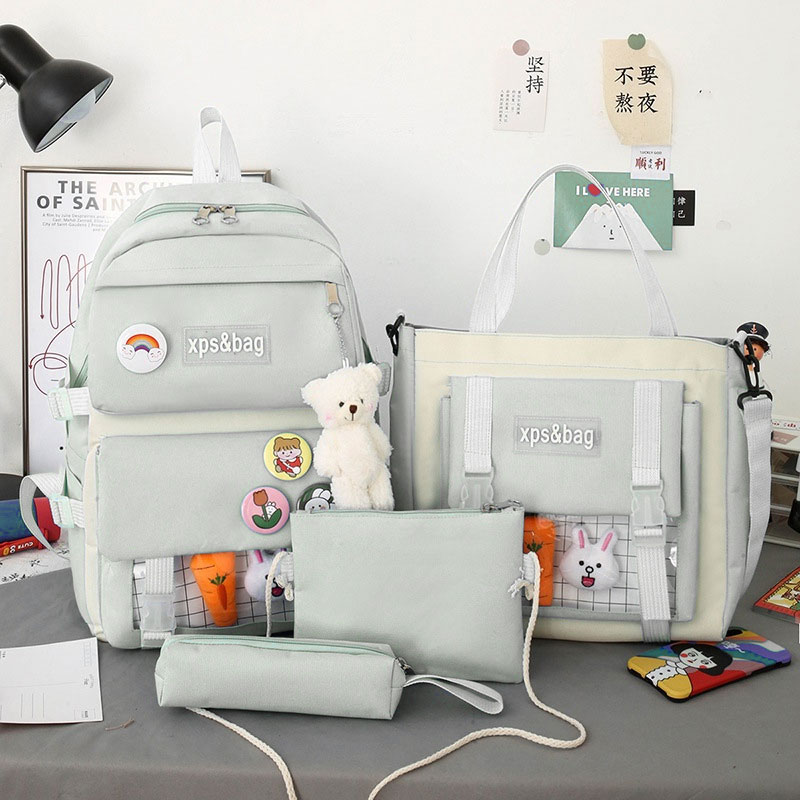 Ensemble de sacs d’école Kawai pour adolescents 3Pcs Ours Beige – محفظة 3 قطع كاواي بيج